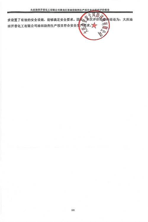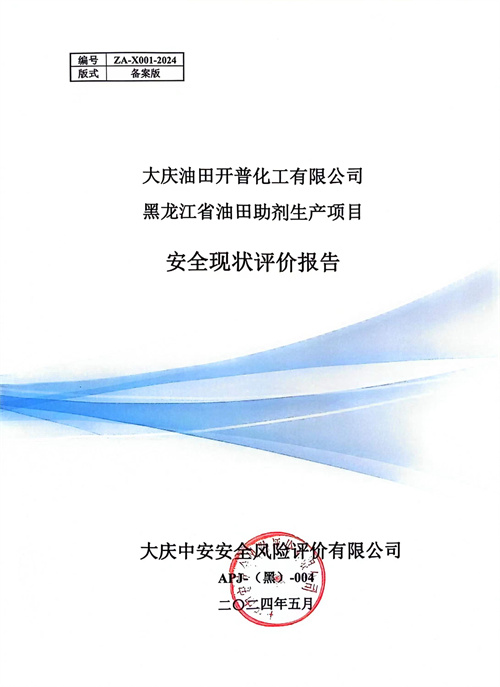 大慶油田開(kāi)普化工有限公司黑龍江省油田助劑生產(chǎn)項(xiàng)目安全現(xiàn)狀評(píng)價(jià)