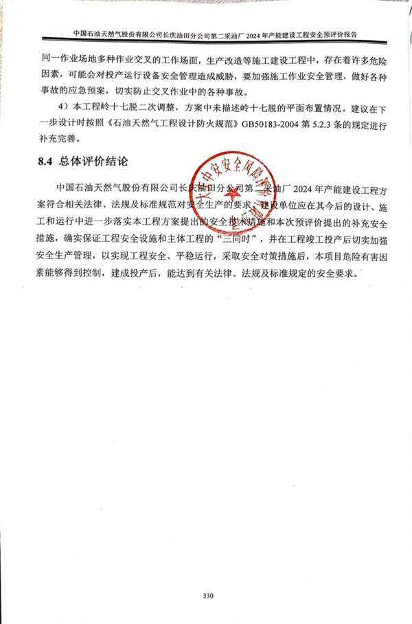 中國石油天然氣股份有限公司長慶油田分公司第二采油廠2024年產(chǎn)能建設工程安全預評價