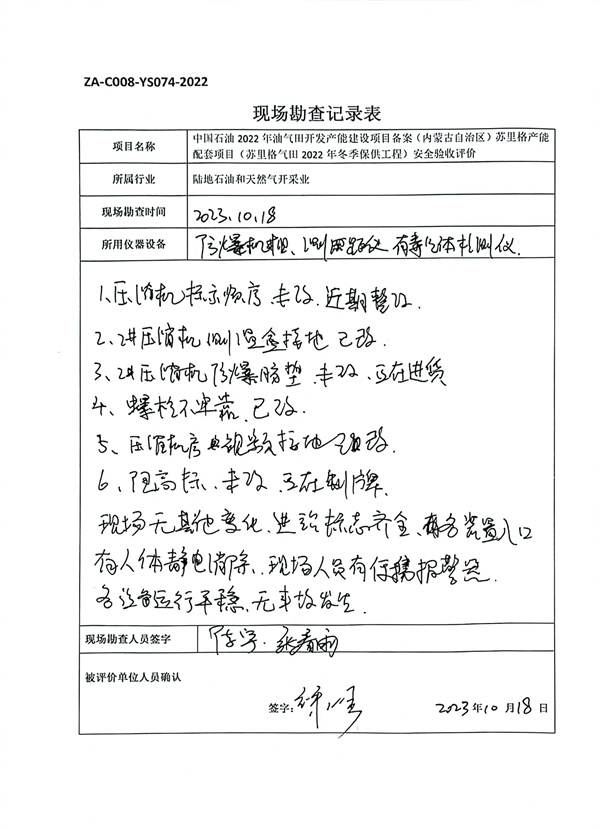 中國(guó)石油2022年油氣田開發(fā)產(chǎn)能建設(shè)項(xiàng)目備案(內(nèi)蒙古自治區(qū))蘇里格產(chǎn)能配套項(xiàng)目(蘇里格氣田2022年冬季保供工程)安全設(shè)施設(shè)置和運(yùn)行符合安全生產(chǎn)要求,試運(yùn)行情況良好,安全生產(chǎn)管理有效,具備安全驗(yàn)收的條件。