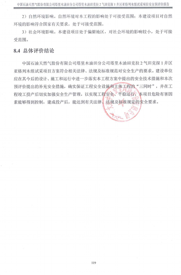 中國(guó)石油天然氣股份有限公司塔里木油田分公司塔里木油田克拉2氣田克探1井區(qū)亞格列木組試采項(xiàng)目安全預(yù)評(píng)價(jià)報(bào)告