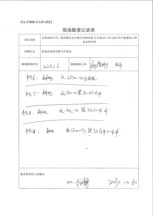 吉林油田二氧化碳開發(fā)公司大情字井油田黑72區(qū)塊69口井2022年產(chǎn)能建設(shè)工程安全預(yù)評價報告 |