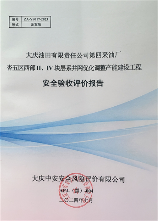 大慶油田有限責(zé)任公司第四采油廠杏五區(qū)西部II、IV塊層系井網(wǎng)優(yōu)化調(diào)整產(chǎn)能建設(shè)工程安全驗(yàn)收評(píng)價(jià)報(bào)告 |