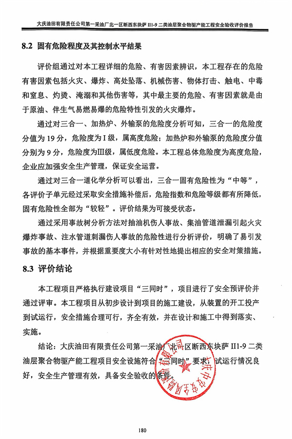 大慶油田有限責(zé)任公司第一采油廠北一區(qū)斷西東塊薩II1-9二類油層聚合物驅(qū)產(chǎn)能工程安全驗收評價報告