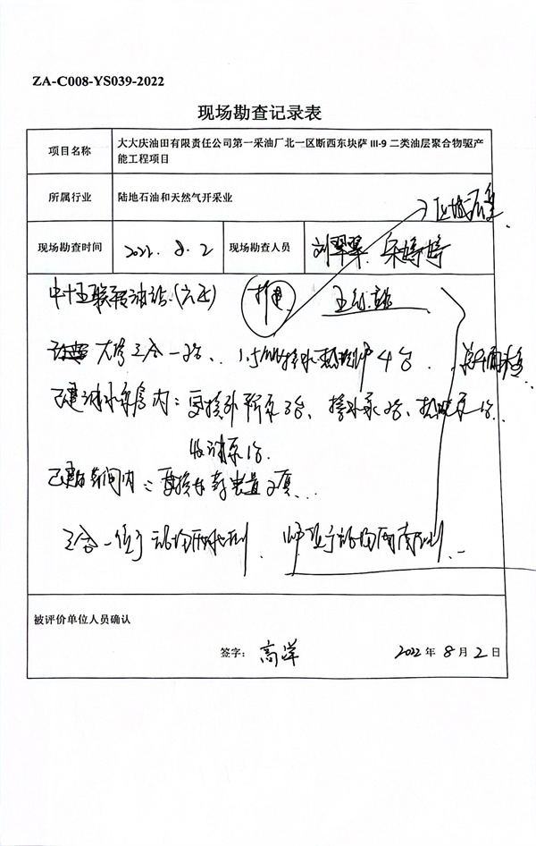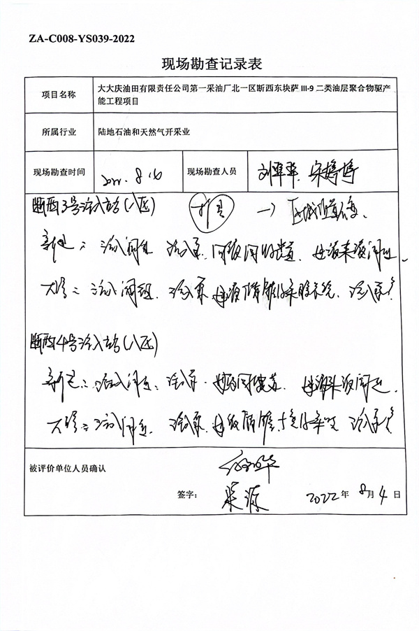 大慶油田有限責(zé)任公司第一采油廠北一區(qū)斷西東塊薩II1-9二類油層聚合物驅(qū)產(chǎn)能工程安全驗收評價 |