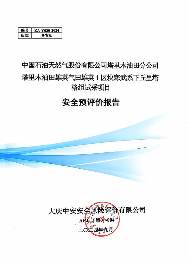 中國石油天然氣股份有限公司塔里木油田分公司塔里木油田雄英氣田雄英1區(qū)塊寒武系下丘里塔格組試采項目安全預評價