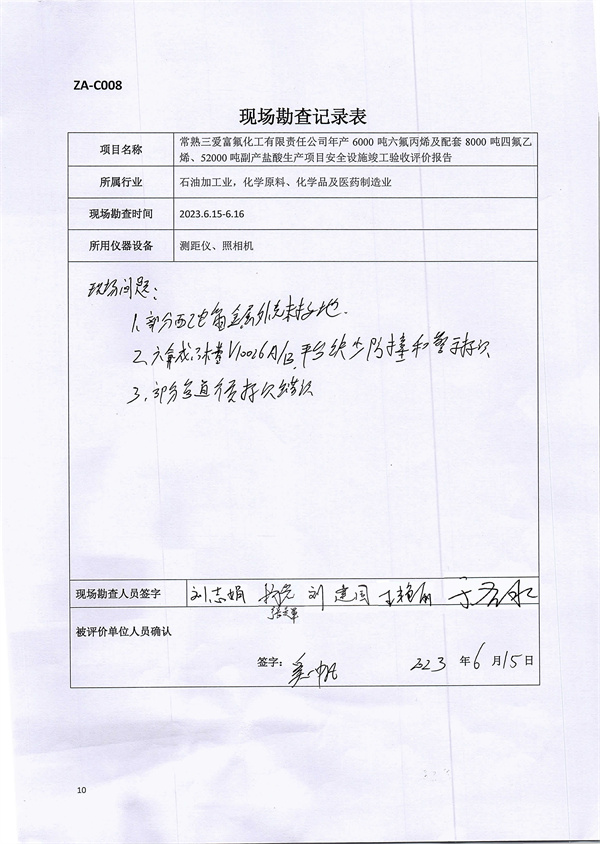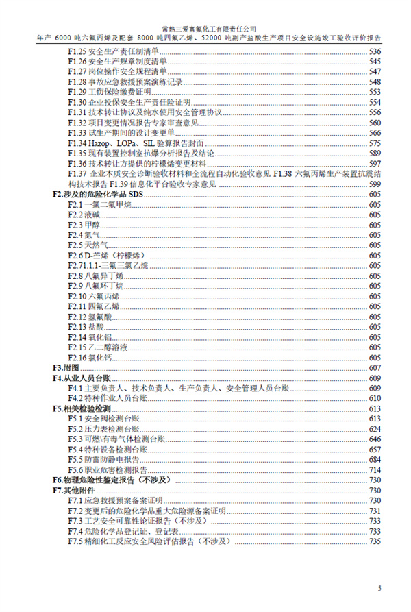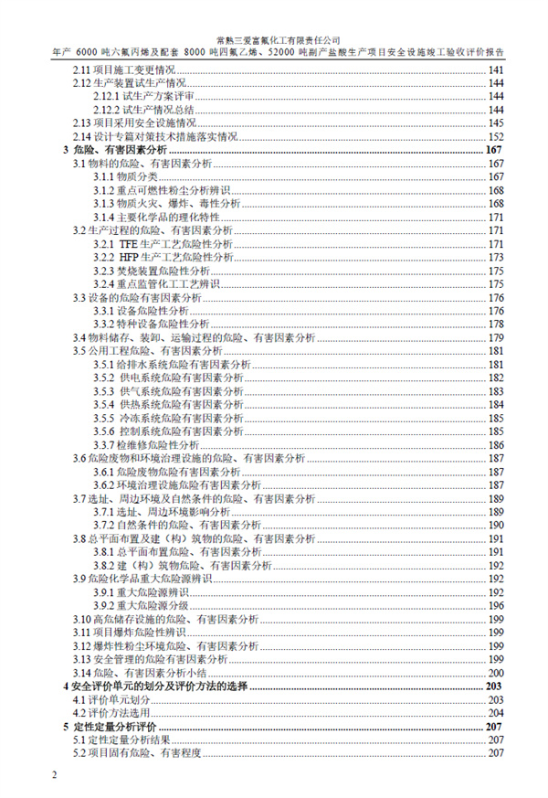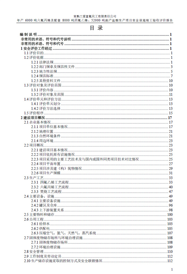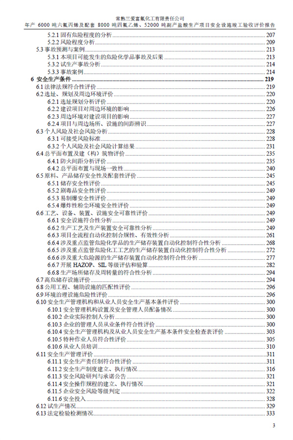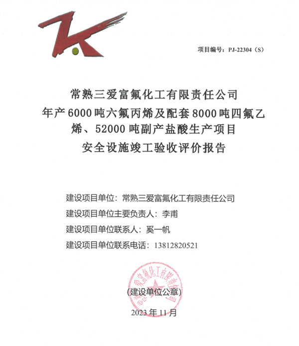常熟三愛富氟化工有限責(zé)任公司年產(chǎn)6000噸六氟丙烯及配套8000噸四氟乙烯、52000噸副產(chǎn)鹽酸生產(chǎn)項(xiàng)目安全設(shè)施竣工驗(yàn)收評價(jià)報(bào)告