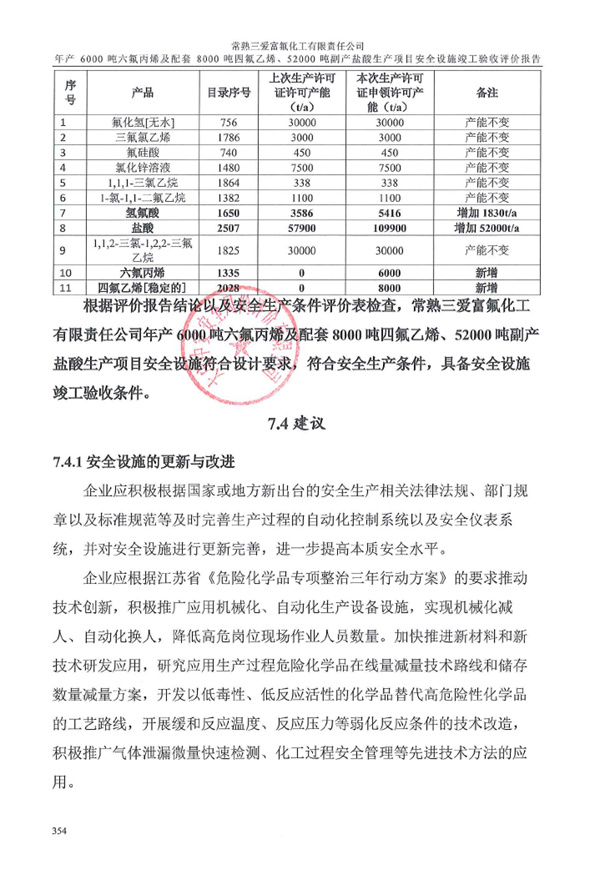 常熟三愛富氟化工有限責(zé)任公司年產(chǎn)6000噸六氟丙烯及配套8000噸四氟乙烯、52000噸副產(chǎn)鹽酸生產(chǎn)項(xiàng)目安全設(shè)施竣工驗(yàn)收評價(jià)報(bào)告 |